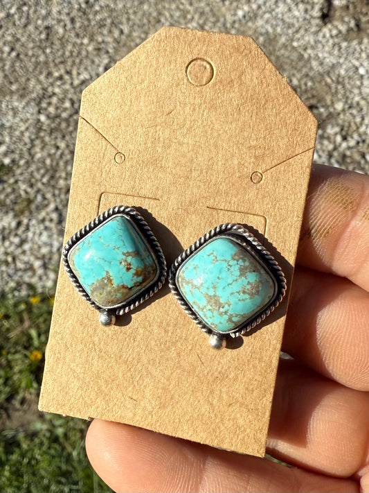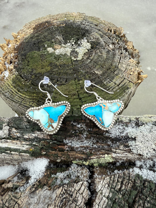 Sold outBlue Ice Dahlia Cow Head Earrings